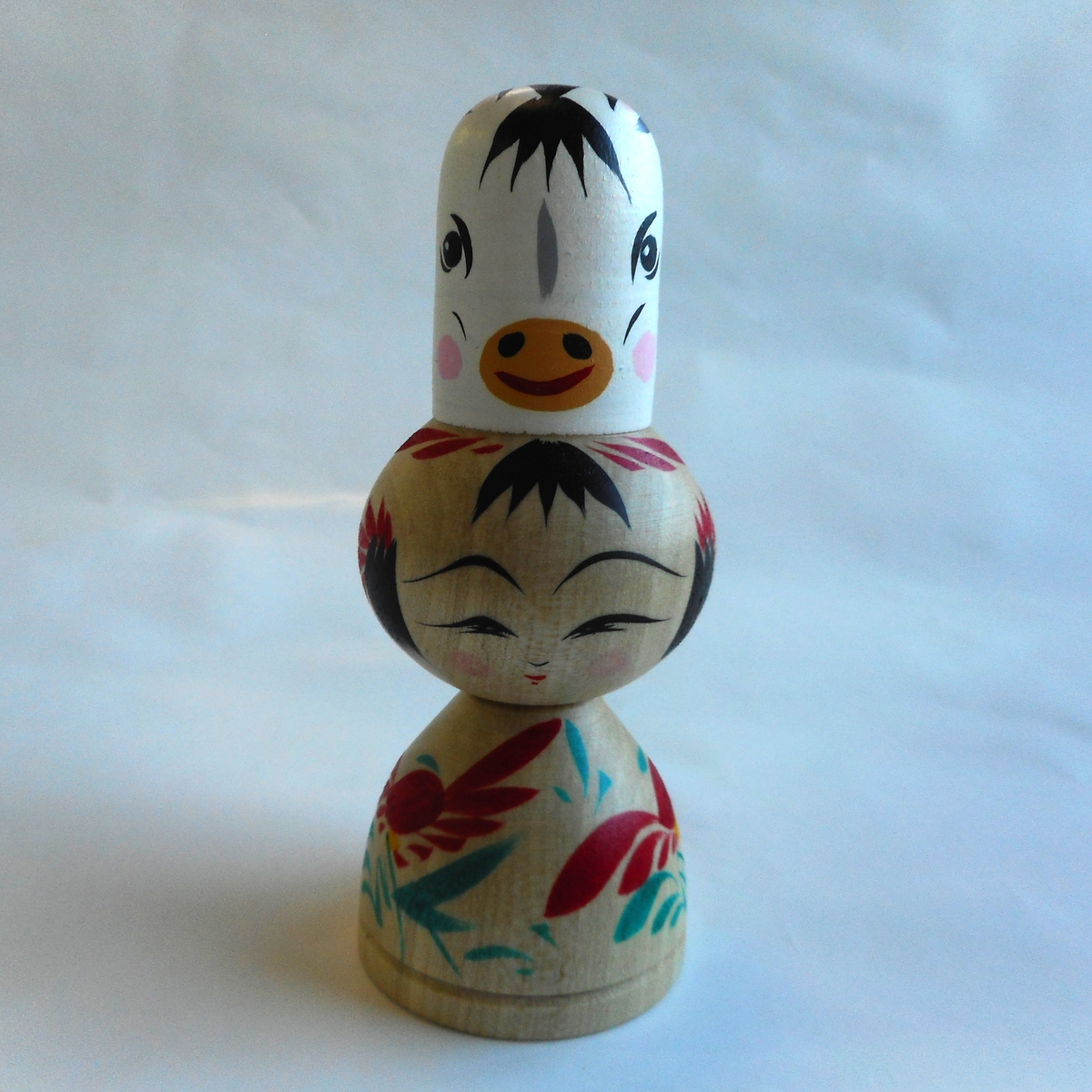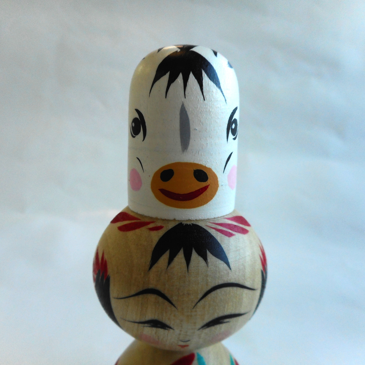 作並系の平賀輝幸工人が制作した、2026年の干支「午」を頭の上にのせた「こけし」です。