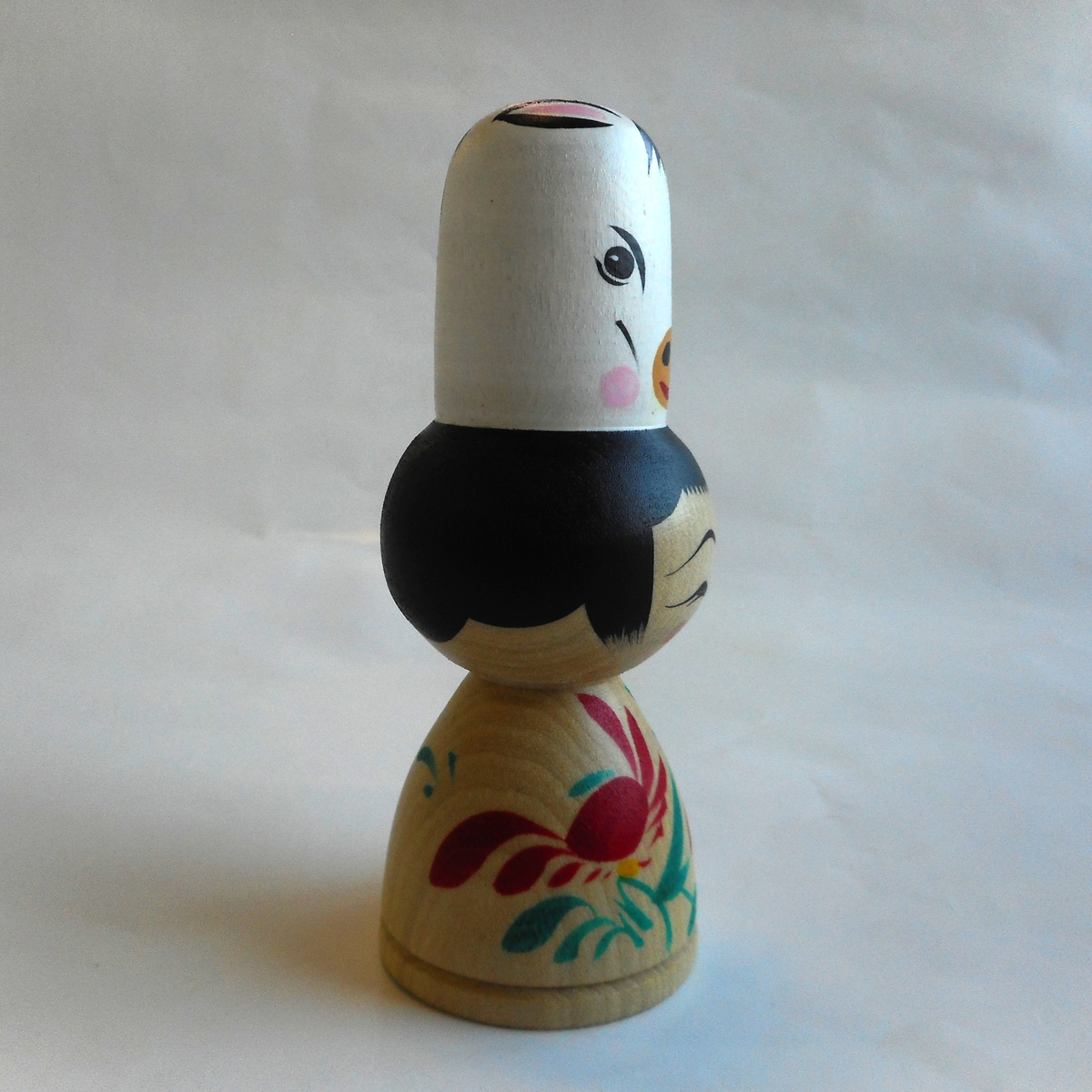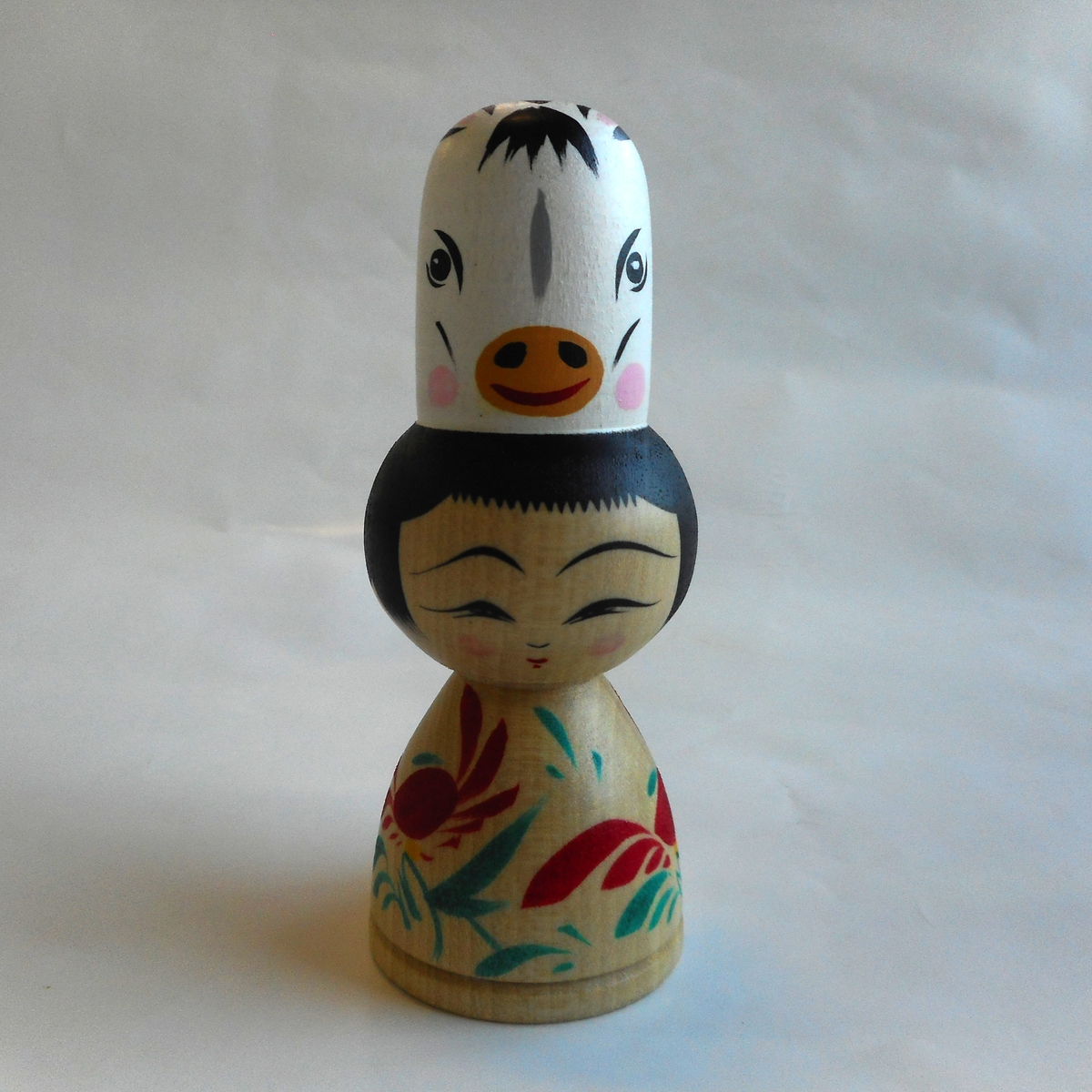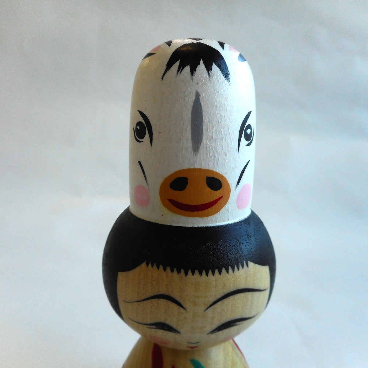 作並系の平賀輝幸工人が制作した、2026年の干支「午」を頭の上にのせた「こけし」です。